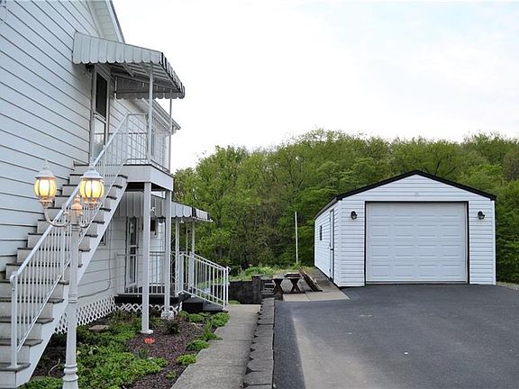 Great location in the quaint Worthington community. This 3 bedroom home is located on a well maintained lot with off street parking on the paved driveway, a 1 car detached garage, and a carport. Enjoy entertaining and listening to Buffalo Creek in your back yard from the covered picnic area. The attached shed gives lots of storage opportunities. The main floor features a large master bedroom and a first floor laundry. The spacious living room has a built in electric fireplace for those cozy winter nights. There's plenty of storage in the kitchen. The second floor has 2 more bedrooms and a bonus room with a built in kitchen. The second floor has a private entrance and was previously used as a rental unit. This home also boasts 2 full baths and 2 half baths! The basement has a gas fireplace and a door leading to the back yard.