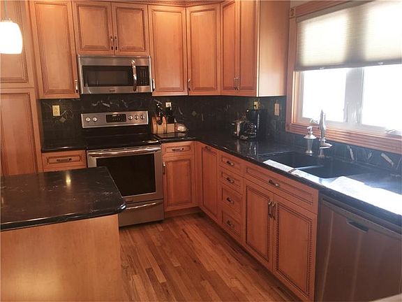 Amazing home ready for you. All redone including roof, furnace, AC, doors, windows, kitchen, baths, lighting, flooring, electric, plumbing + so much more. A chef's master delight, this kitchen will inspire....plenty of counter space, gorgeous cabinets & countertop, HUGE peninsula island with bar seating, under cabinet lighting, marble back splash, and beautiful stainless appliances that all stay. Large living room/dining room with pretty hardwood flooring, an awesome wood burning Yodel stove that can easily heat the whole floor! (Low gas bills) Brand new bathrooms, updated electric box with 90+% new wiring, all new plumbing. Lower level with plenty of room and storage and the washer/dryer stay. Walk out to the fabulous yard featuring wild life, privacy, and find that perfect area for the best fire pit ever. Sub panel for generator with battery back up