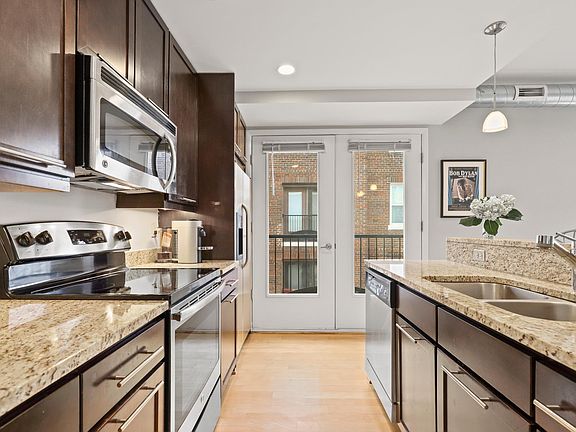 Well-appointed modern corner studio with an open floor plan, hardwood floors, and TWO Juliet balconies. Perfectly situated on a treelined street between Bloomingdale and LeDroit Park, this condo is in a very quiet yet central location (short distance to Whole Foods, U Street, NOMA, Shaw, Downtown, and Eckington Yards). The spacious, light-filled home features an open kitchen that is equipped with stainless steel appliances, a dishwasher, granite countertops, rich cabinetry, and a large island with seating. The open space offers room for a queen bed, couch, tv, and a dining set. The generously sized bathroom with tub also has a long granite vanity countertop offering lots of storage. Off of the bathroom is an enormous walk-in closet that can hold a ton of clothes, and then some more (there is an additional closet in the hall too!). The Washer and Dryer is located off of the bathroom. This well taken care of property also features central air and heat. The unit is furnished. Doesn't include internet or electricity (powers heat and A/C)