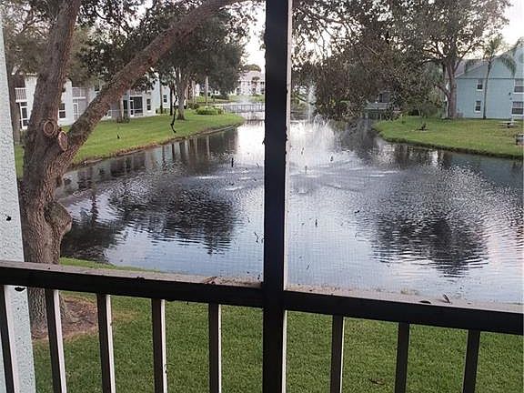 Enjoy, beautiful lake and fountain views, directly from your living room or peaceful screened lanai. Pool located next door. This lovely 2 bedroom, 2 bathroom second-floor unit offers expansive ceilings and abundant natural light. Fresh paint, new carpet, vanity.