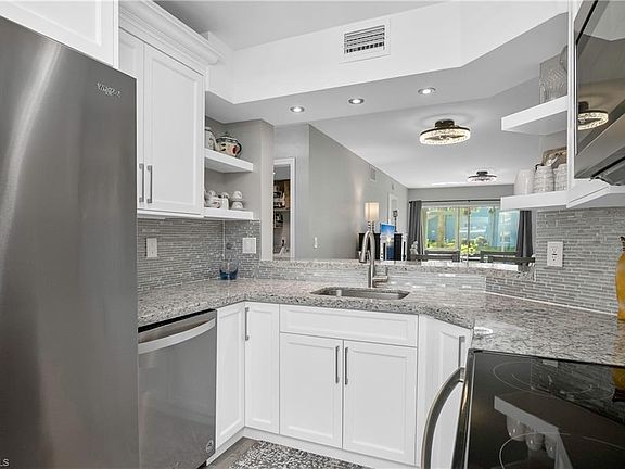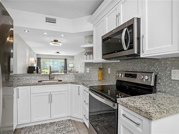 Looking for a move in ready, completely remodeled 1st floor 2-bedroom 2 bath condo in North Naples with Southern exposure and beautiful lake views? Well, here it is! Listen to just some of the amenities of this property and see why we think it's currently the best deal in all of Pipers Pointe. LVT Plank style flooring throughout except the bathrooms. Beautiful eat-in kitchen with breakfast bar, granite counter tops, glass tile backsplash, soft close white shaker cabinets and drawers and Whirlpool stainless steel appliances. Formal dining area. Brick pattern porcelain tiled lanai with electric hurricane shutter for added protection and security overlooking the lake. Large master suite with walk-in closet. Master bathroom has polished porcelain tile floor, granite counter tops, dual vanities, and a spacious walk-in shower with tiled walls and glass tile accents. Utility room with washer and dryer and plenty of storage space. Within minutes to the Gulf of Mexico, Costco, Whole Foods, Trader Joes, Shopping and Dining. See if you can find a property in this condition, with these amenities, in this location, for this price, then come and see what a real deal looks like in Naples Florida.