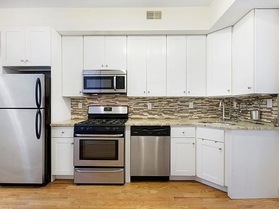 Don't miss this fully renovated 2 bed + 1 bath condo in the booming Jersey City Heights, just a few short blocks from Hoboken and the 2nd Street Light Rail Station. Natural light abounds with both eastern and western exposures. You'll enjoy 42" kitchen cabinets, granite countertops, stainless steel appliances, high ceilings, central air / heat, and hardwood floors. The oversized master bedroom boasts an exposed brick veneer wall and easily accommodates a king sized bed, or it can be used as a spacious living room for entertaining. Owner pays water, sewer, and trash removal. Tenant is responsible for gas and electric. 1 month broker fee and credit check required.