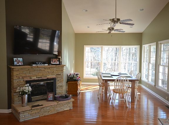 This great Lake Hartwell home has everything you will need for a vacation home or full time living. The main level has a huge great room open to the kitchen and dining area. The great room opens onto a large covered porch overlooking the lake. There are three bedrooms and two baths on the main level. The terrace level has a large rec room, a full bath and three flex rooms for additional sleeping, exercise or an office. There is a concrete cart path in place to the double slip dock. This home also has a two car garage for your cars and/or your lake toys.