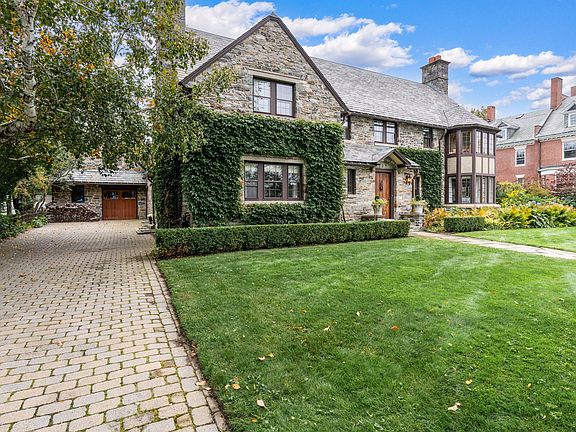 Once in a lifetime, a storybook dream comes true. This enchanting French Tudor cottage style home has long been one of the most admired properties in Portland. As you look past the stunning gardens, you will see the most beautiful stone home in Maine, designed by architect John P. Thomas. Inside, the large formal gallery leads you into the stately dining room with plenty of space for large dinner parties. The glass doors open to your private outside dining/patio area. The front to back living room is perfect for large scale entertaining as well as intimate gatherings. The oversized wood burning fireplace will warm your conversation area and the expansive bay windows with views of the Western Prom Park will bring the sunsets right inside! The Gourmet kitchen is fitted with Wolf/Subzero appliances, a butlers' pantry and a food pantry. The breakfast nook is perfect for more informal meals and coziness. The kitchen is resplendent with custom built-ins to display your table ware collections. The home boasts 6 Bedrooms, 4.5 baths and a wonderful first floor den with a wood burning fireplace. The Primary bedroom has a fireplace, dressing room and a large window seat to curl up and admire the mountain and river views. There are 2 primary bathrooms outfitted with marble, with separate soaking tubs and showers. There are plenty of rooms for working out, working from home, guests and family as well as a large laundry room. Outside, enjoy the wonderful living spaces, rare for the city, beckoning to enjoy in privacy. Wonderfully stone wall fenced backyard has kitchen garden plots for vegetables and herbs as well as plenty of perennials for easy landscaping. The whimsical backyard pond with fountain is perfect for enjoying water sounds. This beautiful home was built in 1920 and has a 2-car stone garage with storage overhead and a private paver driveway. Everywhere you look here, you will find serene sophistication & easy living. Come live your storybook dream here!