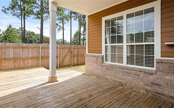 Spacious corner unit with spacious floor plan. Stainless appliances, travertine back splash and island. Master has a private balcony and spacious closets. Master bath has separate shower and garden tub. Installed security with door camera. Flood zone C. Back gate goes directly to bus stop. Great deck on first floor and balcony on second! HOA fees are $225 per month and POA fee is $94 per quarter. HOA fees pay for green space up-keep, building from studs out, and termite contract.