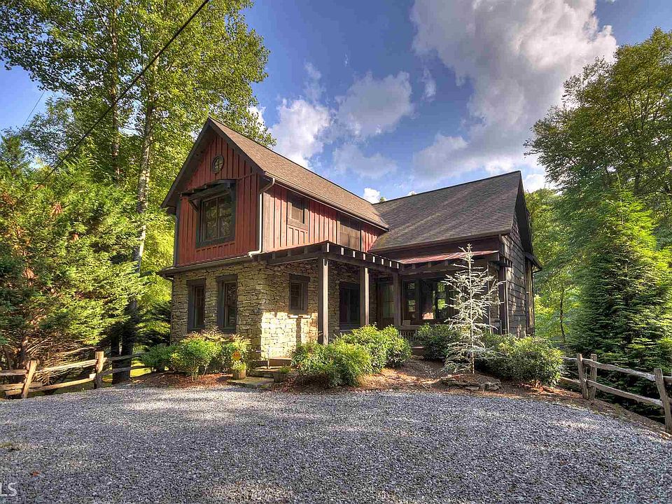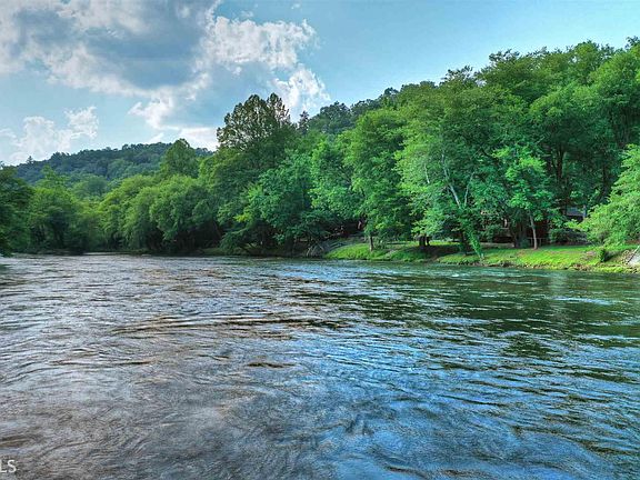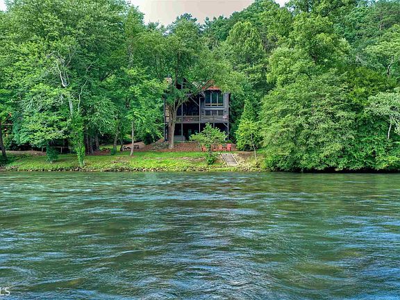 Gorgeous Keith Sumner on the mighty Toccoa River. This lodge style cabin is situated on the widest part of the lower Toccoa River. The tail waters of the Toccoa offer a perfect temperature for fish to thrive and many years for you to enjoy fly fishing. The interior is spacious with high ceilings and lots of glass and massive fireplaces/rockwork all in Sumners unique style. There is a master on the main as well as a master suite upstairs. The terrace level has a bar/entertainment area and 2 bedrooms. You can walk out and utilize the steps into the river and go fishing or you can tube or kayak and get out at Horseshoe Bend Park.