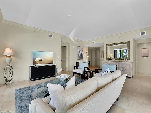 Live in ultimate waterfront luxury with fabulous resort amenities in the heart of downtown Naples! This condo is ideally located within the Naples Bay Resort Residences waterfront complex offering spectacular water views from walls of windows on both sides. An open floor plan features a gourmet eat-in kitchen with Wolf appliances and high top kitchen table that opens to the living room and sitting area, ideal for taking in all the water views! The spacious balcony terrace has both a two top cafe table for outdoor dining and comfortable club chairs for lounging. As to amenities, the Naples Bay Residences II condo building has its own private pool right downstairs, or you can enjoy the three resort style pools at the Naples Bay Club, which in addition to the pool complex (which has a zero entry free form pool with waterfall, hot tub, lap pool, lazy river, and separate adults only pool and hot tub) offers cabana rentals, poolside bar and dining, a state of the art fitness center, full service spa, beach shuttle, and 6 Har-Tru tennis courts. Just downstairs, you will also find the Naples Bay Resort marina offering boat rentals and additional on-property dining at restaurants.