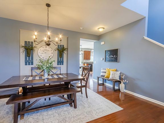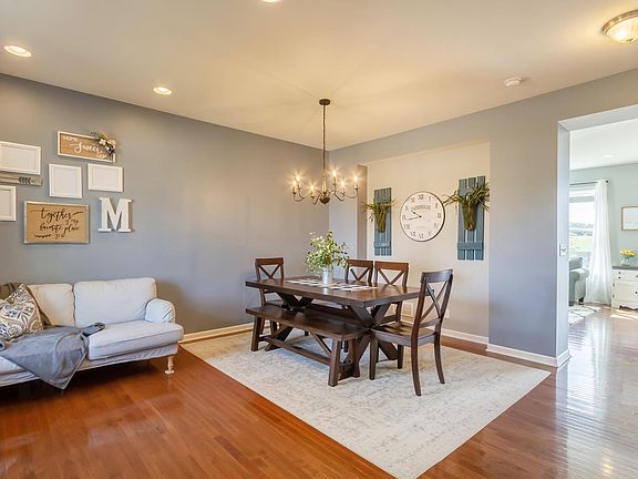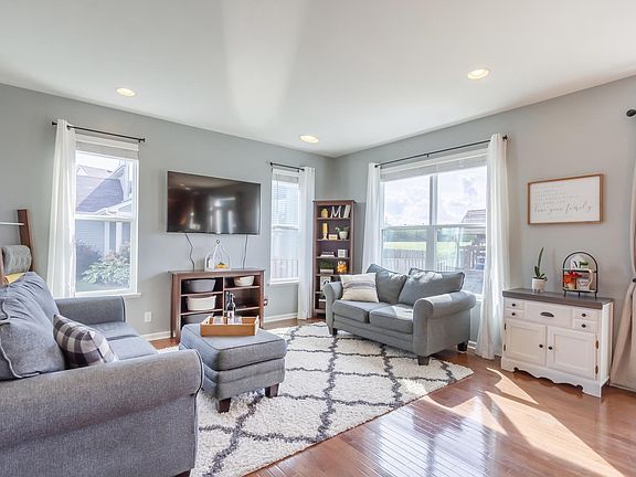 Don't Miss Out on this Upgraded 4 bedroom home Ready for new owners! Step in to the soaring 2-story foyer and the formal living room/dining room with an abundance of natural light, hardwood flooring, and upgraded lighting. The eat-in kitchen boasts 42" cabinetry, tile backsplash, recessed lighting, center island with breakfast bar, and table space opening to the family room ~ Perfect for entertaining! An updated laundry room and powder room round off the first floor. Upstairs you'll find 4 bedrooms. The master suite offers a tray ceiling with ceiling fan and recessed lighting, walk-in closet, and private bathroom with double vanity. The spacious yard features a beautiful stamped concrete patio, storage shed, firepit, and backs to open space. Nothing to do but Move In!