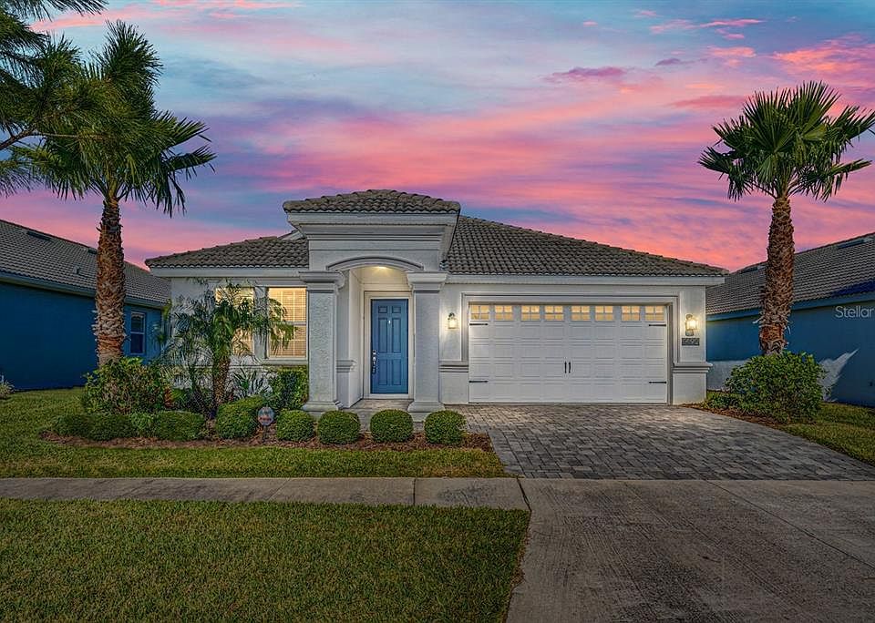 BACK ON THE MARKET due to buyer's financing fell through.....Welcome to this exclusive gated community of Champions Gate within minutes of Disney World. ***FULL GOLF AND TENNIS MEMBERSHIP INCLUDED IN HOA!!!*** This stunning one-story home features 3 bedrooms and 2 baths plus a flex room that can be used as an office; The beautiful backyard and the covered lanai are perfect for entertaining. The open space concept of this spacious home is one of the most desirable in the community. The KITCHEN is equipped with 42" UPPER CABINETRY, GRANITE COUNTERTOPS, STAINLESS STEEL APPLIANCES such as a refrigerator with water dispenser and ice maker, microwave, range, and dishwasher. The KITCHEN is open to the great room with and dining room that flows into the very convenient lanai and relaxing backyard. A Large Master Bedroom Suite with a spacious walk-in closet and two other nice size bedrooms with a bath in between help to complement this spacious floor plan. Just minutes away from all the attractions, restaurants and major highways. This community is within striking distance of restaurants, schools, golf courses, all the amenities of a big City including the new Champions Gate Down Town! Everything is included... HOA includes cable, phone, Oasis Club House, 24 hour security guard gated, Internet, all exterior Landscape, volleyball, Tennis courts, $75 food voucher every month and unlimited access to Golf! The OASIS CLUB at Champions Gate features a splash pool, lazy river with water slides, resort style pool, fitness center, arcade game room, movie theater and more. Dine at the full-service Grille Room restaurant or pool-side at the Tiki Bar. Daily movies, activities and programs are offered for everyone. Free shuttle rides within the community allow easy access between your villa and the Oasis Club, 2 award winning golf courses & tennis courts.