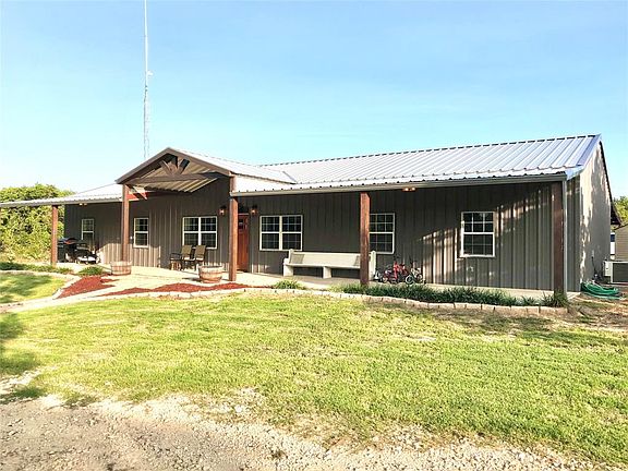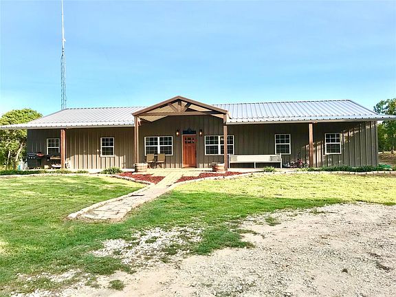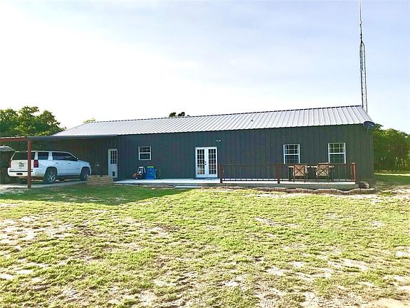 If you are looking for a small combination place with a nice home, this is it! This 25.67 acres has approx 8 acres in coastal Bermuda that averages 65-75 round bales of hay per year. The remainder of the acreage is heavily wooded with Post Oaks which wraps around the home for privacy and seclusion. There is a small stock tank hidden in the wooded area which could be enlarged or stocked with fish. All metal home has laminate wood floors throughout except for carpet in the bedrooms & stained concrete in the bathrooms. Open concept floor plan has 2 bedrooms and a media or play room on one end & master suite & mudroom on the other. Stainless appliances convey. Water well is approx 120' deep and produces 40 gpm