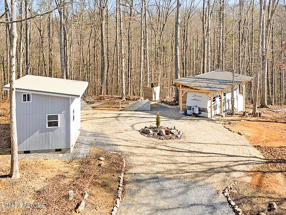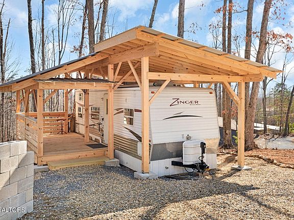 Your new ''home-base'' features a cozy studio style accessory building & a camper with a custom covered deck to enjoy those tranquil mountain views. Features include: 19 gallon water heater, 2x8 rafters in both structures, antique finishes in studio, and full masonry foundation on the studio. The property offers a season creek and 1/3 mile nature trail!