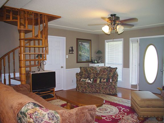 The downstairs includes 3 bedrooms and 2 full bathrooms, oak hardwood floors, ceramic tile in dining, custom oak cabinets, and granite counter tops in kitchen. Propane fireplaces in living area and master bedroom. Spacious bedrooms. Master bedroom includes private full bath and walk in closet. 16x16 covered back deck off the dining room. Upstairs there is a large bonus room that could be used for a fourth bedroom, kids playroom, storage etc and a private full bath. Handmade oak spiral staircase going to the upstairs. 28x40 detached garage. Within the last few years there has been several updates including: New metal roof on house and shop, new central heat and air installed, new stainless steel refrigerator, dishwasher and granite counter tops in kitchen, new vinyl hand railing on front and side porches.