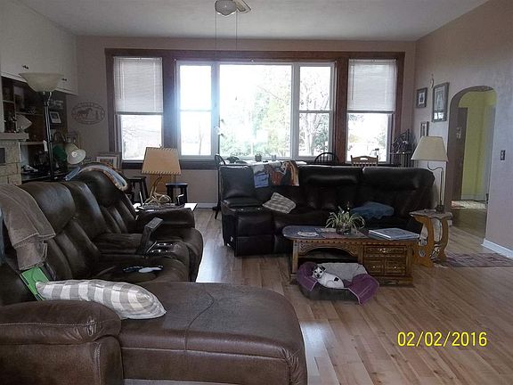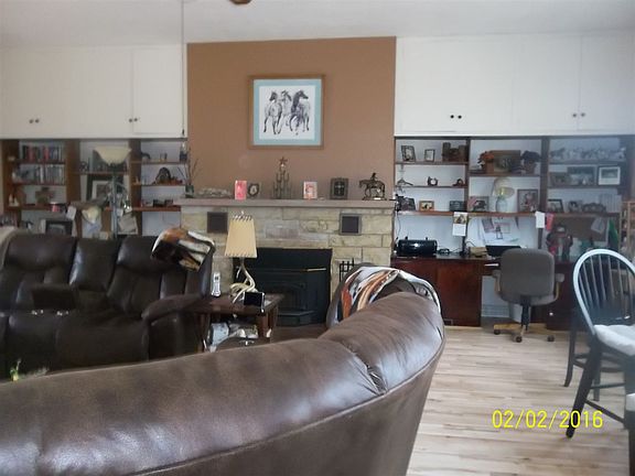 A great location for family,Look out over country side in all directions. large yard, gazebo w/electric, carport 26x36, for Camper/Motor Home, attached 2 1/2 car garage 28x28, w/hot tub for 6 people, pole barn 24x40 Brick, 3 bdrms, 2 baths (1 with Jetted Tub, Skylight) Large great room 22x25x11 with built in bookcases/desk, stone woodburning fireplace with insert, French doors opens to deck. Kitchen with appliances overlooking large front yard. Bedroom and bath completes the main level, upstairs has large master bedroom, another bedroom, and Bath with jetted tub. Basement has stge room, laundry, shower, woodburning fireplace with insert, and family room. Also has two entries to the outside. Replacement Windows and doors in 2015., Garage Door Openers, fruit trees, Apple, Peach, Persimmon, Pecan. Lots of Wild Life. Partial fenced in backyard. Large storage room in basement. Old Beautiful trees. Partially paved driveway. Very quiet location. A deck for a pool. Home was a one room school house believed to be built somewhere between 1912 to 1915. City Water & Gas.