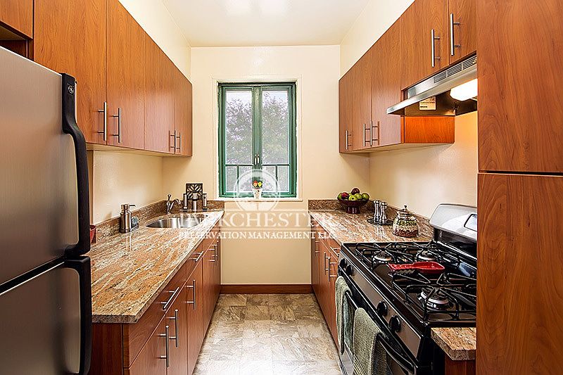 The one-bedroom Contemporary Apartment has ample space, lots of sun, traditional styling and best of all ? the most up-to-date kitchen finishes and modern appliances. Select from one of the two kitchen choices in either Arctic Ribbon or warm cherry. The cool tones of the Arctic Ribbon finish with sleek off-white and grey cabinets are complemented by slate grey granite countertops. The second kitchen finish features Warm Cherry cabinets with matching rose-toned granite countertops for a classically elegant look. And of course, residents have access to all the usual onsite amenities: Macy?s, supermarkets, blink Fitness, express bus service, the Parkchester subway stop (30 minutes to midtown), parks and 24-hour roving security.