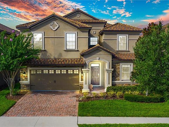 Looking for the ultimate vacation home or primary residence? Then, look no further! Priced to sell, this home will suit the needs of a growing family or make an awesome rental home in the most sought after community of Champions Gate. This professionally furnished home has everything you are looking for and more. This well designed home welcomes you into the beautiful tiled hallway which opens up into the spacious family and dining room areas which overlook the south facing pool and lanai area. Alongside the family room is a well proportionate kitchen featuring luxury appliances, granite counter tops and an abundance of cabinets for all your culinary needs. Two master suites are also accessible on the ground floor. Upstairs has two family suites as well as additional bedrooms for your guests. The media room has been converted into a games room fore everyone to enjoy. This home offers lots of entertainment space from the spacious living areas both upstairs and down as well as the well designed game room in the garage. Sun lovers will appreciate this home which features a wonderful SW pool with no rear neighbors, as well as a large covered lanai for outdoor shade and al fresco dining. Need additional entertainment? The Oasis Club is available for your entertainment. Impressive pool and lazy river are available for your enjoyment as well as fitness center, movies theatre and restaurant.