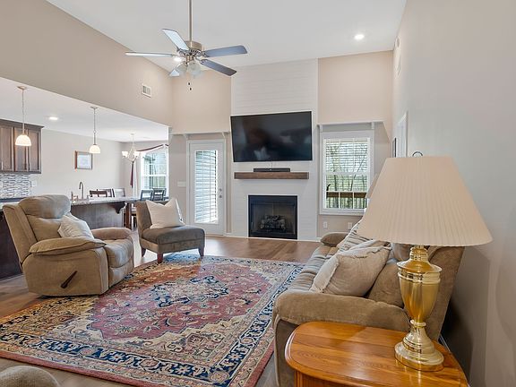 Welcome to your dream home nestled in the serene countryside! This stunning property has a 30 x 50 garage/shop wired for 220 and has a 12 x 12 room that could be used as an office, man cave, craft room or workout room! Possibilities are endless! Situated on a 1.50-acre lot that extends into the tranquil woods, this single-level gem features three bedrooms and two baths, including an owner’s suite with a 5ft. tiled shower and double vanities. Step inside to discover an inviting open concept layout highlighted by engineered hardwood floors throughout the great room, complemented by a striking shiplap fireplace. The gourmet kitchen is a chef's delight, showcasing custom cabinets, granite counters with a massive island bar-top, tiled backsplash, and stainless steel appliances. Relax at the end of the day in your hot tub on your extended deck and covered back patio. No HOA!