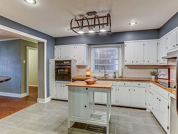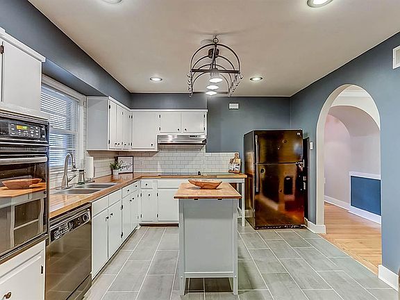 This home was built for entertaining, as it's the ideal blend of an open concept with designated areas, complete with a penny-top wet bar. The spacious kitchen, featuring classic butcher block counters, hinges nicely between the living room and dining room, allowing for optimal traffic flow. Both bathroom floors are newly tiled. Gleaming hardwood floors in the bedrooms, den, and hallway. The large backyard and covered patio are perfect for fall evenings.