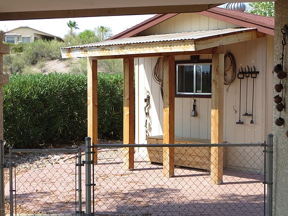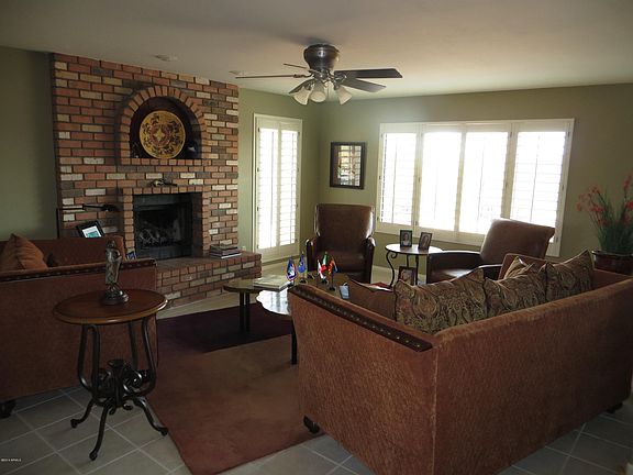 A MAJOR PRICE REDUCTION FOR THIS LOVELY PROPERTY!! Enjoy life on Easy St. from a Large Hilltop lot with mature desert cactus and trees. Privacy with ravines in each side of property. Quail visit each morning and evening. Full views of Vulture Peak and Wickenburg Golf Course. Three Bedroom, Two Bath home with Family Media or Office. Tile floors and NEW Hickory Kitchen with island and Stilestone counters. Two showcase Brick gas Fireplaces. Open living, nice flow from inside to outside. New AC/Heat in 2012. Stucco home/tile roof. All interior shuttered window treatments and on patio doors. Separate ranch style workshop. Room for small horse set-up. Well maintained and tweaked to perfection. Easy access to Three Golf Courses and Exceptional Riding or Desert Exploring on your ATV.