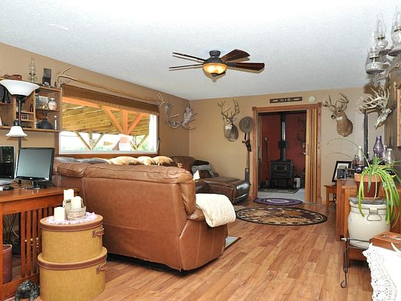 This is a great property on 21 acres just 30 minutes from west Wichita, KS. This is a stunning lot on a nice rolling hill lot of ground, on blacktop road on Highway K2. This property offers serenity and seclusion with the convenience of being right off the highway. There is abundant wildlife on the property. The highway side of the house has an earth berm to hide the highway and get the noise level very acceptable. The back of the house opens to the west with a covered deck expanding the majority of the width of the home, making for fantastic Kansas sunset views. The back yard is expansive and has a lot of nice landscaping, mature trees, and an outdoor shower with solar heated hot water that is very unique! There are a couple of outbuildings, and a chicken coop. You can sit on the deck and safely have your personal rifle or bow range into the nice sloping hill. There are two small ponds on the property that do hold water, and could be enlarged. The seller says it is a very sandy soil for about 7 feet then solid rock at that point. The property also has a huge 40'x70' foot Wick shop building with electricity. This building is also categorized as the detached garage, since multiple vehicles could be parked in it, but there is not an attached garage on the home. There is a large overhead north and south door to get implements, the RV or large trailers in and out. The floor is not concrete, so part of this could easily be modified for horse stalls if needed. The home has a geothermal heat pump with ground source water. In the spring and summer the water exiting the system is used for watering the lawn. In the winter the system is used to bring warm water out to a large stock trough, so it does not freeze. The home has a total of 5 bedrooms, with 3 being upstairs and two conforming bedrooms in the basement. One if the upstairs bedrooms is being used as an office and has a stove in it, but could be repurposed into a conforming bedroom. This home is a stick built home that was moved to this site in 1997 and put on a permanent basement with 9' basement walls. It is not know when the original part of the house was built. The home has great well water and is on a septic system. Schedule a time to see this great house and land in the country and make it your home.