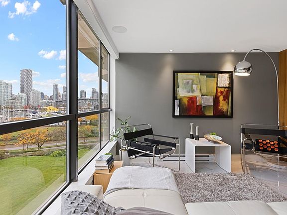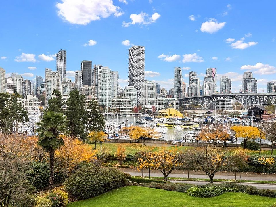 Gorgeous 1 or 2 bm (FREEHOLD) w/close up VIEWS of Vancouver's SKYLINE, GRANVILLE ISLD & striking private courtyard w/fountains & perennials; is this absolutely stunning home! An EXCEPTIONAL TRANSFORMATION of space w/BUILT-IN cabinets, bed, vacuum. THOUGHTFUL roll outs, pull outs & hidden storage to SEAMLESSLY tuck away all your things. A LUXURIOUS KITCHEN w/huge sit up bar, stone counters & solid wood cabinets incl 36-bottle WINE FRIDGE, double Fisher Paykel DW, sleek induction cooktop & wall oven. Bathroom offers DOUBLE SHOWER & DOUBLE SINKS. Large format HEATED FLOOR TILES. You will love & appreciate all the extra features included in this home. Plus SUPER AMENITIES!: pool, hot tub, sauna, gym, meeting, library; all just literally steps to Granville Island! RENTALS ALLOWED, no pets.