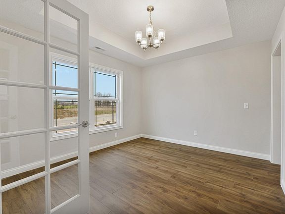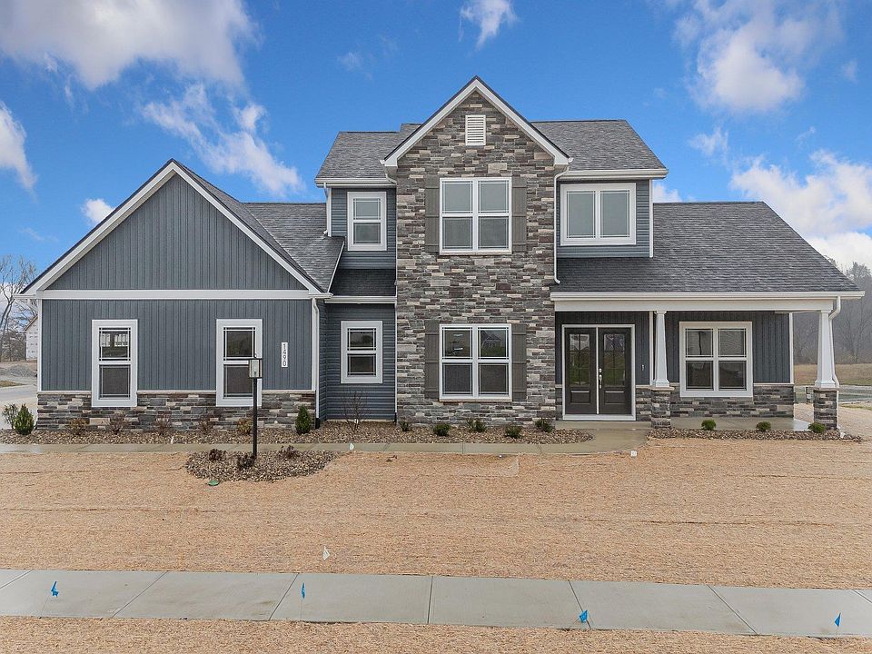 The QUINCY III with Sideload Garage by Kiracofe Homes is a spacious two story with 4 bedrooms, 2.5 baths with panoramic views of the pond. The main floor features an open-concept floor plan with a large kitchen island for entertaining, a dining room/den, the primary bedroom suite and a covered patio. The eat-in kitchen peninsula features quartz countertops, loads of cabinet and prep space and pantry. The upstairs has three additional bedrooms and bathroom with quartz countertops. All Kiracofe Homes include irrigation in front yard, grade and seed in the front and back yard (irrigation in the back and sides available as an up charge), quartz countertops in the kitchen and all bathrooms, a dedicated gas line for your outdoor grill, loads of storage and all kitchen appliances including the refrigerator and water softener. Don't miss a chance to get in on the ground floor of this new construction home. Emrich Hills is conveniently located near all NWA has to offer including shopping, dining, and Dupont and Parkview Hospitals.