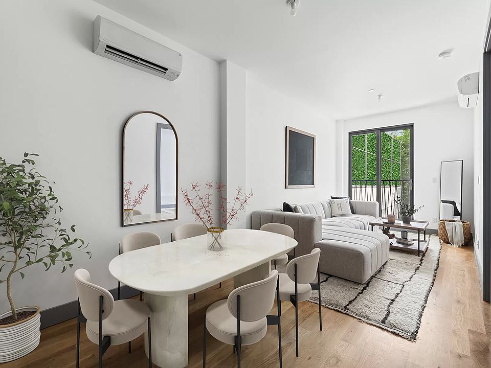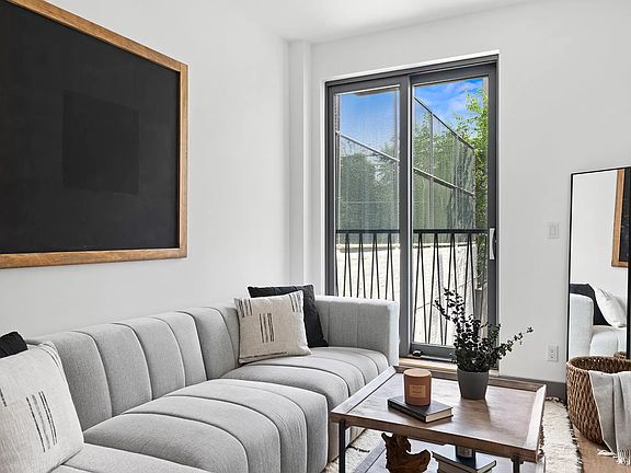 Built with an eye towards design, the newly constructed condominiums at 1490 St Johns Place, are located in the historic Weeksville area of Crown Heights. A strikingly modern 4 story façade rises above the neighborhood, providing an oasis within each unit. Open living spaces with soaring ceilings and expansive windows showcase each units sweeping light. Features include Bluetooth connectable, surround sound speakers, hardwood oak floors, central A/C, and private outdoor space. Sleek, German kitchens are detailed with gorgeous quartz countertop, custom stone backsplashes and high-end stainless-steel appliances from Bertazzoni and XO. Each apartment comes with an abundance of storage space and oversized laundry room with LG washer/dryer and a laundry sink. Bathed in southern light, 2R is a well laid-out one bedroom apartment with 2 full bathrooms and Juliet balcony. Designer bathrooms, including an en suite, have been elegantly finished with black and white tiles and Delta fixtures. Each includes custom vanity with oversized mirrors, a deep-soaking tub and rain showerhead. 1490 St Johns Place is moments away from everyday necessities, boutique shops and more. Conveniently located next to Utica Ave, you will find an abundance of local restaurants, bars and stores. Lincoln Terrace / Arthur S. Somers Park is nearby, and the famous Prospect Park is only a short trip away. Transportation around the neighborhood is provided by 2, 3 or 4 local and express trains at the nearby Utica Ave station. And you're under 30 min drive away from Lower Manhattan via Eastern Parkway. The complete terms are in an offering plan available from the sponsor: File No. CD200119