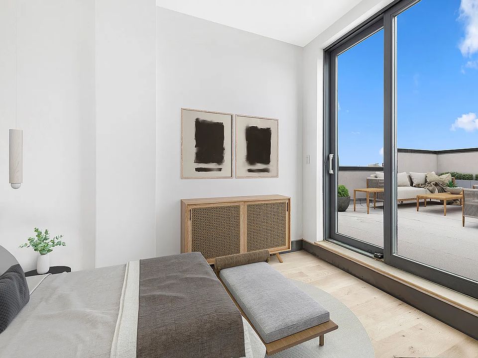 Built with an eye towards design, the newly constructed condominiums at 1490 St Johns Place, are located in the historic Weeksville area of Crown Heights. A strikingly modern 4 story facade rises above the neighborhood, providing an oasis within each unit. Open living spaces with soaring ceilings and expansive windows showcase each units sweeping light. Features include Bluetooth connectable, surround sound speakers, hardwood oak floors, central A/C, and private outdoor space. Sleek, German kitchens are detailed with gorgeous quartz countertop, custom stone backsplashes and high-end stainless-steel appliances from Bertazzoni and XO. This apartment comes with an abundance of storage space including a dedicated laundry closet with an LG washer/dryer. Unit 4F, the penthouse, is an elegant two bedroom apartment with 2.5 bathrooms and balcony. The apartment also boasts a terrace bathed in northern light that spans over 560 sq ft, offering plenty of outdoor room to host and entertain. Designer bathrooms, including two en suites, have been elegantly finished with black and white tiles and Delta fixtures. Each includes custom vanity with oversized mirrors, a deep-soaking tub and rain shower head. 1490 St Johns Place is moments away from everyday necessities, boutique shops and more. Conveniently located next to Utica Ave, you will find an abundance of local restaurants, bars and stores. Lincoln Terrace / Arthur S. Somers Park is nearby, and the famous Prospect Park is only a short trip away. Transportation around the neighborhood is provided by 2, 3 or 4 local and express trains at the nearby Utica Ave station. And you're under 30 min drive away from Lower Manhattan via Eastern Parkway. The complete terms are in an offering plan available from the sponsor: File No. CD200119