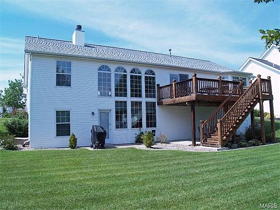 Beautiful professionally landscaped 5 bedroom, 3 full bath, atrium walkout ranch nestled in the subdivision. Front of home faces west giving you late afternoon and evening shade on your massive deck and lower level patio. This home is great for entertaining and the main level boasts a vaulted atrium greatroom with gas fireplace, nice sized dining room with hardwood flooring that leads to the big deck overlooking a great backyard with in-ground sprinkler system. Big kitchen with cabinet pull-out shelves, pantry and plant shelves. A split bedroom floor plan allows privacy to the vaulted master bedroom where you'll enjoy your private master bathroom with separate shower and a jetted tub. The other two main level bedrooms are ample sized and share a full hall bath. Your lower level has a big family room, additional rec room, two bedrooms and a full bath. In sought after Ft. Zumwalt West schools and conveniently located. You'll want to put this one on your must see list. COME ON HOME.