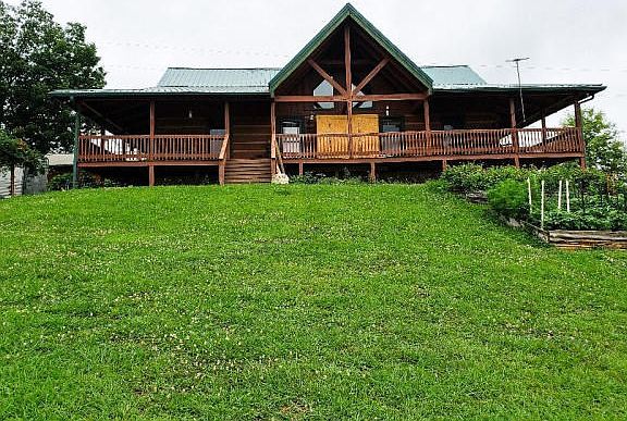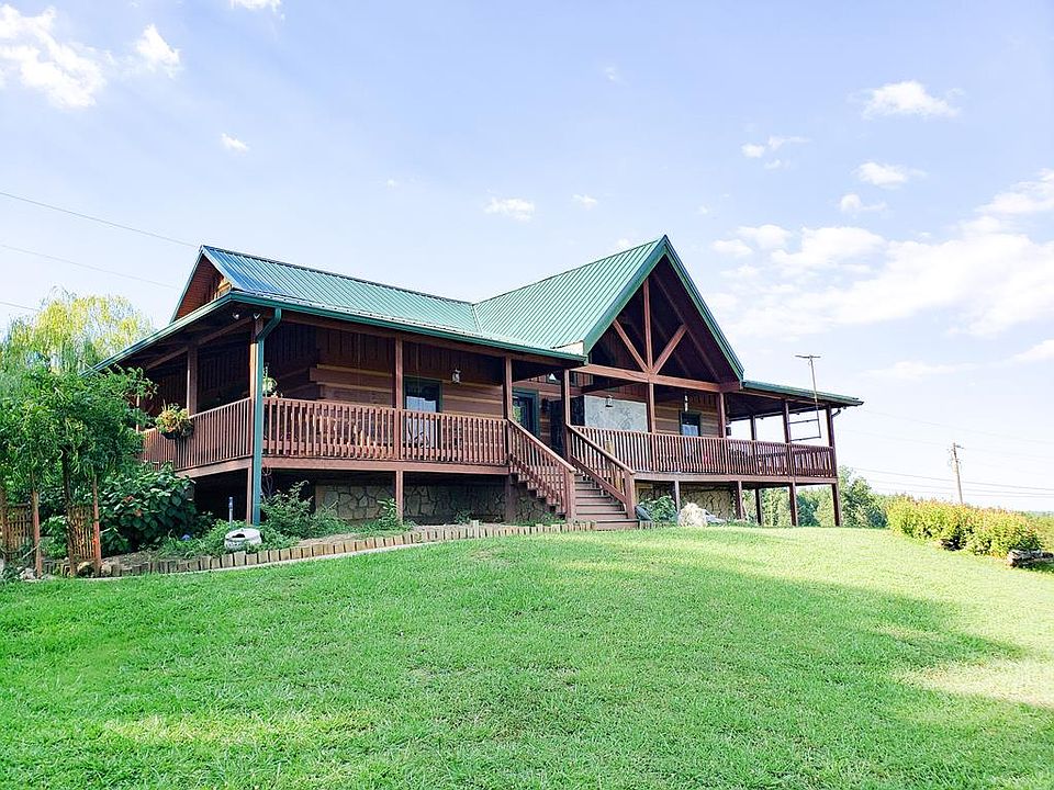 Log cabin with a wrap around porch on 12.89 acres with phenomenal views of the mountains. This amazing home features 4 bedrooms, 4 baths, a open concept living room / kitchen / dining room, office, basement apt / in law suite, and unfinished space in basement. The main level of the home features a luxurioius updated kitchen with solid wood cabinets, stainless steel appliances, a oversided island with built in shelves and a large farm sink. The living room is the heart of the home complete with a stone surround around the wood burning fireplace to gather around. The master suite with en suite and 2 walk in closets walks out to the wrap around porch. A additional bedroom and bath on the main level as well. Upstairs you find 2 bedrooms, a office and a bath. The basement has a generous amount of space for a workshop / storage ect. The basement apartment has a private entrance outside, complete with a beautiful kitchen, living space, bath room and walk in closet. Outside you will find yourself in a oasis of farm land that is completely fenced and cross fenced, many amenities for horses, cattle, goats, chickens, hogs or any kind of animal you desire. The 6 stall horse stable comes complete with a birthing stall, wash stall and tack room also a large lean to on the back of the horse stable. The goats have their own set up with several goat stalls and a milking facility. The large hay barn will allow for up to 150 round bales for dry storage, a workshop with 220 power good for welding ect, 2 chicken coops fully set up, a green house for year round growing and more. This is a fully set up farm with a absolutely stunning log home and priceless views of the Smoky Mountains and Cherohala Skyway. Don't miss out on this one!!
