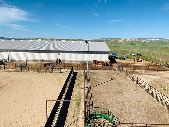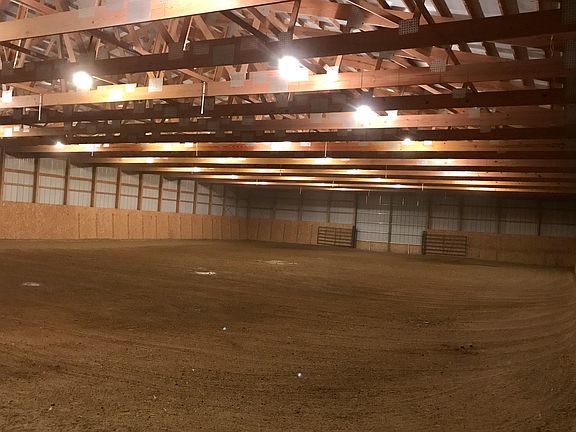 Horse property in turn key condition! Wonderful acreage (110acres) with over 24 irrigated trees around the home. This 5 bedroom has almost 4000' with a walkout basement and a 30'x24' att 2 car garage with a built-in 130' heated dog kennel, and new cabinetry. For any horse owner its a dream come true! Offering a 80' x 150' indoor arena with 3 stalls, automatic water, overhead sprinkler system, roping boxes, and head catch. There is a tack room (heated) a bathroom and a refrigerator.