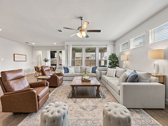 This beautiful 4-bedroom, 3-bath home boasts stunning curb appeal with its brick and stone elevation, landscaped yard, and prime corner-lot location. Inside, the open-concept design creates a perfect flow for everyday living and entertaining. The spacious kitchen features an extra-long island, granite countertops, designer lighting and hardware, custom cabinetry, and ample counter space and storage. The kitchen seamlessly opens to the living room, where a stone fireplace adds warmth and charm, as well as the adjacent dining space for easy gatherings. A dedicated study offers a quiet workspace, while the upstairs game room and spacious playroom provide plenty of room for family fun. The primary suite is a true retreat with a large walk-in closet and a private bath.