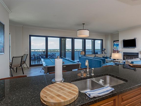 Immaculate Penthouse-style 5BR/5.5BA 8th floor waterfront condominium with private garage! Conditioned space from elevator to your double solid mahogany entry. Step into the circular foyer lined with custom built benches and mosaic tile floor details. Experience the stunning views and enormous waterfront terrace area overlooking the glory of Ole' River and award winning Perdido Key State Park - beaches. Open floorplan has great space for large family and friend gatherings! Five full bedrooms, an office - sleeping room in this case, and another bonus room that is currently a pantry/storage space make living easy. Essentially occupied 4 visits per year, this is a most gently enjoyed property that feels brand new! Custom window treatments, entry foyer benches and lighting elevate the casual sophistication. (Dining chandelier does not convey). Fireplace in the living area, stainless appliances, granite countertops throughout. Florencia encompasses the "whole" coastal lifestyle with indoor & outdoor pools, tennis courts, fitness center, steam and sauna, community gathering spaces all situated on a beautifully manicured campus. Easy stroll to the public beach access with bathrooms and 2 miles of state park beaches. Don't miss the opportunity to own the cream of the crop!