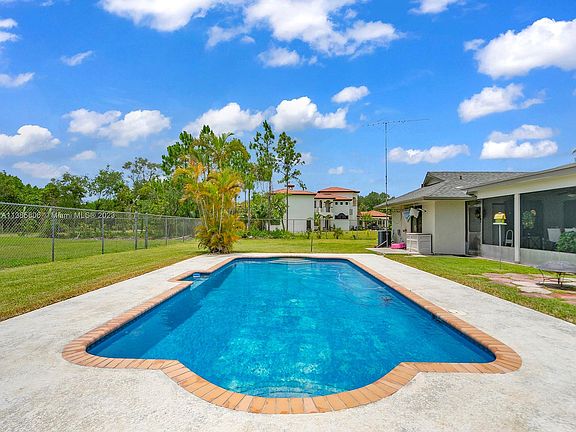 Enjoy the peaceful life with this custom pool home just off the beaten path in a very desirable Redland location. Home features 4 bedrooms, two baths, spacious great room, commercial refrigerator, formal dining room, surround sound system, tile flooring throughout main living area and custom wood flooring in bedrooms, two a/c units, roof new in 2014, impact windows on front of home and shutters for the back, 2.5 car attached garage, 15x 30 inground pool, large screened patio, electric solar powered gate, circular driveway, stables, RV hook up & more all on a fully fenced 1.14 acre lot! Whole House Warranty. Not in a flood zone