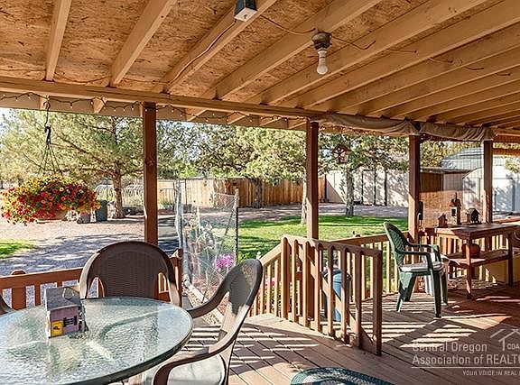 Explore the beauty of the canyons and fish the Crooked River and Deschutes River in Central Oregon. Storage options galore. This is an immaculate well maintained 4 bed 2 bath open concept with lots of recent updates to include newer laminate floors, kitchen with self-closing cabinets & drawers, ss appliances & garbage disposal. Bathrooms with updates. Wrap around porch overlooking the yard & raised garden beds. Sprinkler and drip system in garden & back yard. Equipped with ADA ramp. 2 frost free hydrants. Property is fenced & gated. Home has metal roof. Come & enjoy all the amenities of Crooked River Ranch To include, golf, tennis, pickle ball, hiking, parks and community events.