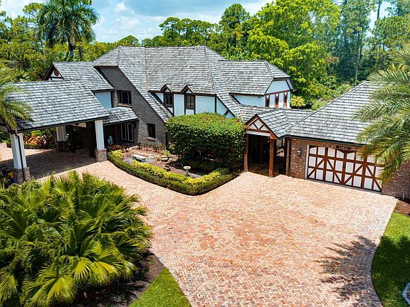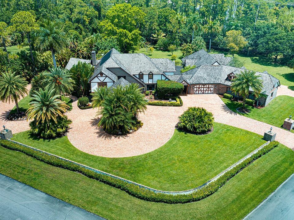 This is the one! Located in Paddock Park this gorgeous Tudor style estate boasts a 4 bedroom, 4 bathroom main residence, a 3 bedroom, 2 bathroom guest house, pool, and a 6 car garage, nestled on a private 2.36 acre lot. The main residence features an updated chef's kitchen, den, huge entertainment/game room, formal dining, and one bedroom on the first floor. The detached, single-level guest house has a private entrance and driveway, volume ceilings, interior laundry room, and a great room. The garage is an enthusiasts dream and features high ceilings with room for a lift, Motor Trend cabinetry, epoxied floors, and a full bath. Additional features include a whole house generator, Chicago Brick driveway, summer kitchen, outdoor bar area, and heated spa. This property does have room for a stable and paddock. Centrally located in the heart of Wellington and minutes from Winter Equestrian Fest and equestrian activities, zoned for A-rated schools, and close to shopping and dining.