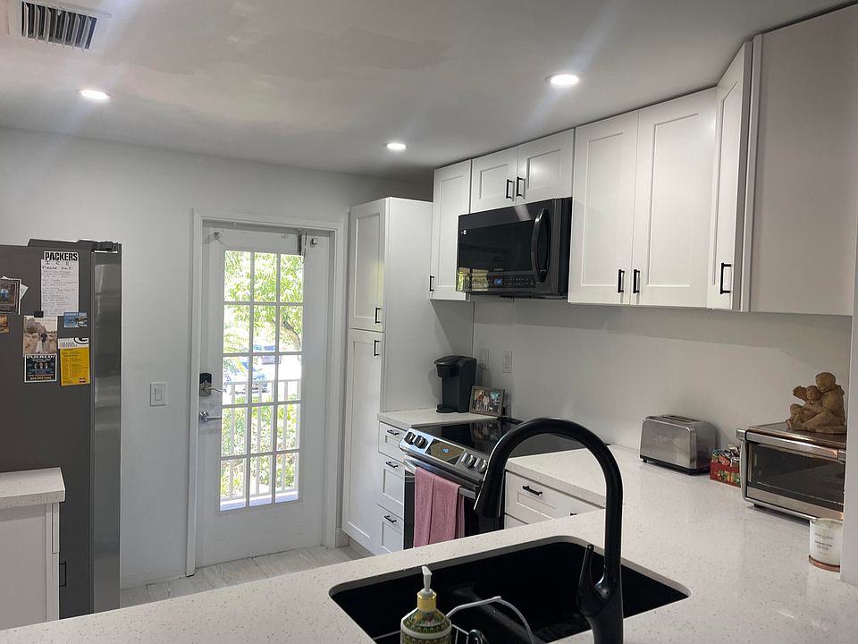 NEWLY RENOVATED, RARE FIND UNDER $300K JUST W I75 EASY ACCESS TO HIGHWAYS, ON SECLUDED RD, GOLF CART TO GRAND PALM CLUB. WALK TO WHOLEFOODS, DINING, MULTIPLE GYMS, TENNIS, SOCCER FD, PARKS & TRAILS. CLOSE BY SPORTS & WATER COMPLEX. $286 HOA, NO MIN DOWN & MIN FICO 650, 1 PET, ALL AGES!BRIGHT CORNER, RENOVATED LUXURY APPLIANCES, CAN LIGHTS, ALL THRU LG WHITE Porcelain Tiles (No Carpet), New White Shaker Cabinets, Pantry, lots Drawers & Storage. LG MS Suite. No Popcorn ceiling! W/D closet. Both Bathrooms renovated w Luxury Vanities, LED Mirrors, New Fixtures & Toilets. LG Windows, an airy Bright home ALL White. ALL Newer appliances Warranty (2023) Samsung Internet Fridge, Newer W/D(2023), AC (2022). Seller pays Special Assessment. HOA $386JUNE. 1yr no rental Relative ok.
