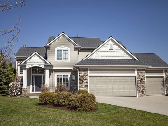 This beautiful home in Aboite Township is nestled at the end of a cul-de-sac in the Lakes of Jonathans Landing. If you desire a home with stunning curb appeal and a gorgeous front porch to welcome your guests, this is it! Beautiful views of the pond start from the moment you walk in the front door! The layout is impressive with attention to detail, inside and out. Stamped concrete, a fire-pit close to the pond with a built-in bench, arched doorways, high ceilings, beautiful floor to ceiling stone fireplace, updated master suite on the main level with a Jacuzzi tub and tiled shower in the master bath, walk-in closets, lockers off the garage and new flooring throughout most of the home. The three bedrooms on the second level are all larger in size. The loft area can be used as a study area, extra tv room or whatever your heart desires. You will love the eat-in kitchen with breakfast bar, again...the view, it's stunning. The stainless steel appliances stay! Entertaining will be a breeze in the spacious finished daylight basement. The basement is complete with a large entertaining area, full bath, a large room currently used as a craft room, storage galore and an area for your exercise equipment. The washer and dryer also stay with the home! Jonathans Landing is complete with fishing ponds, a playground and swimming pool for your enjoyment.