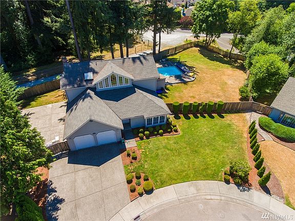 Hardwood + soaring ceiling entry, adjoining formal living/dining room showcase tall windows that soak in tons of natural light, large kitchen opens to breakfast nook and family room with fireplace. 4 bedrooms, 2.5 bath, 2400+ sqft, sits on a little over half acre lot in cul-de-sac. Huge fully fenced backyard with swimming pool, entertainment sized deck, and room for RV! Minutes to local amenities, library, Fairwood Golf, shops, restaurants. Welcome home!