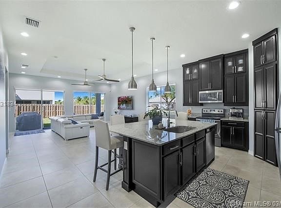 Beautiful Modern Corner Single Family House in Mosaic at Venetian Parc! This tastefully upgraded spacious home features 3 Bedrooms, 2.5 Baths, Great Room, Family Room, Kitchen Island, Covered Patio, 1st Level Master Bedroom , 2-Car Garage. This home boasts tile flooring throughout Living areas, granite kitchen counters, elegant wood kitchen cabinetry with stainless steel appliances, Vaulted ceilings with recessed lighting, oversized driveway with pavers, washer and dryer and much more. Mosaic is a serene neighborhood, close to it all but away from the bustle. The Community features a resort-style clubhouse and pool, BBQ pavilion, business center, state-of-the-art fitness center, playground, walking trails, and park.