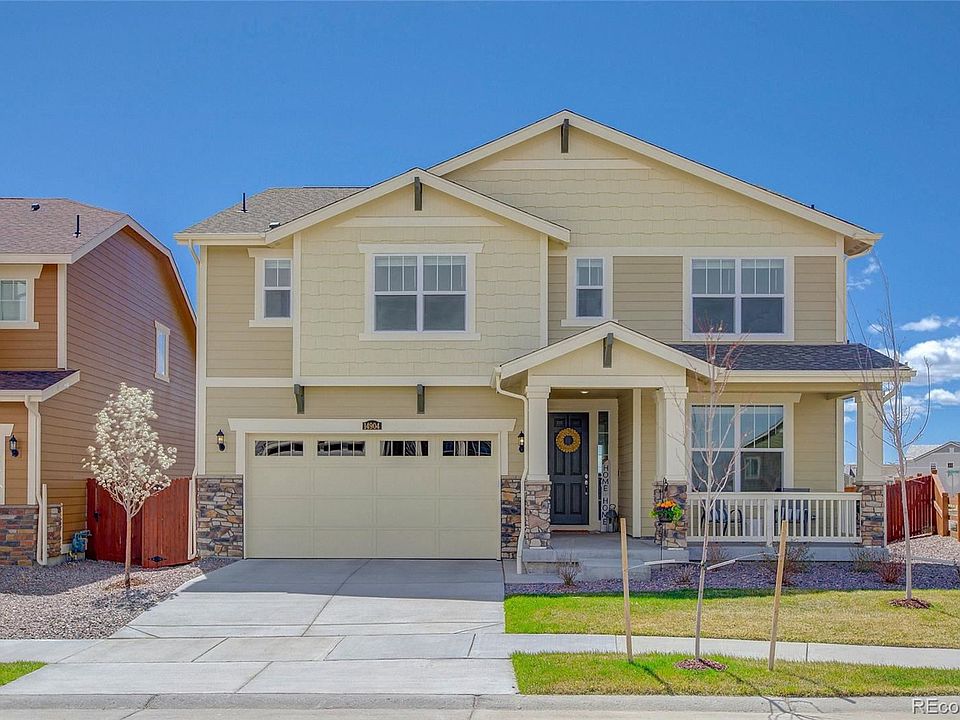 Welcome home to this stunning 2 story home located in the highly desired Sierra Ridge neighborhood. Located on a premium corner lot this home has amazing views of the mountains from the front porch or upstairs bedrooms and a peaceful view over the city from the back porch. Offering 5 bedrooms and 4 bathrooms this home has been well cared for and you can tell. Walking in the front door you feel the open concept with tons of natural light. The great room offers vaulted ceilings and a gas fireplace. The spacious kitchen has a nice size walk in pantry, stainless steel appliances, granite countertops and a large island. Walk through the nook to access the covered deck which is great for entertaining or just to enjoy peace in the backyard where there is no neighbor behind you. There is a pocket office near the kitchen with a built in desk and plenty of storage. The main floor offers a large bedroom with an adjacent full bath that can be used as for guests, a great office space or playroom. The second floor provides four bedrooms including the master suite including a 5-piece ensuite with a soaking tub and two walk-in closets. The second bedroom has its own attached private full bathroom and third and forth bedrooms share a Jack and Jill bathroom. The basement features large garden windows and is ready for your final touches. It has tons of natural light, rough in plumbing for an additional bathroom and tons of storage space. This home is upgraded with a whole home steam humidifier, smart home pre-wired, heating coils on the roof and solar panels. There is a 3 car tandem garage and a flexible line sprinkler system in the front and back that does not require a winter blow out. Location is key with quick and easy access to I-25 and less than a 15 minute commute to the Denver Tech Center. Showings start Friday 4/29/22.