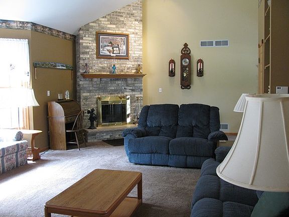 THIS 3 BEDROOM 2.5 BATH STONE RANCH IS SET ON THE LARGEST LOT IN THE SUBDIVISION. HUGE OPEN KITCHEN WITH 16' CEILINGS LOOKS OUT INTO THE VAULTED FAMILY ROOM WITH WOOD BURNING FIREPLACE. MASTER WITH LUXURY BATH, 2 CLOSETS & VAULTED CEILING. BASEMENT IS FINISHED WITH GAME ROOM, REC AREA AND LARGE OFFICE WITH CLOSET. ROOF IS LESS THAN A YEAR (TEAR OFF) CAC 6 YRS, CARPET-2 YRS, SPECTACULAR BACK YARD, SHED & MORE!!