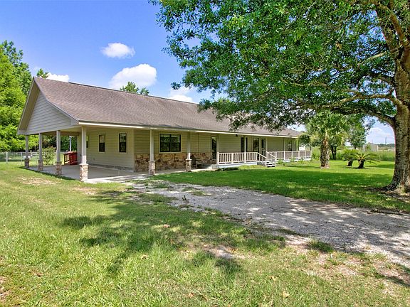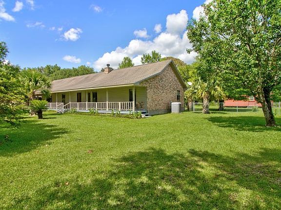 Country living at its best! This beautiful ranch-style home is located on 5.1 well-maintained acres that is fully fenced and surrounded by mature trees. This home features a wood-burning fireplace, a beautiful enclosed sunroom and covered livestock stalls with a tack room! Fenced and cross fenced.Never flooded per seller.