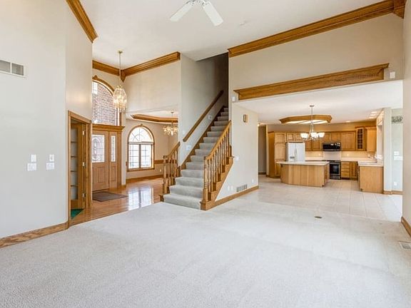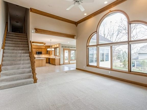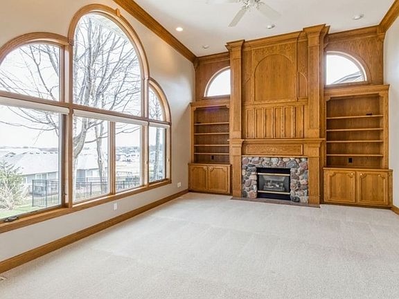 This 1.5 story Clive home on a cul-de-sac lot is a treat with mature landscaping and in an area close to all amenities! They don't build them like this anymore! The main level has a mixture of 9' and 14' ceilings with lots of natural light from the massive windows providing that grand open feeling throughout the home. The main level includes the Master suite with its own en suite, family room, 4-Season room, kitchen with eat-in dining, formal dining room and laundry/mud room. The upper level shows 3 nice-sized bedrooms to top off the sleeping arrangements. The lower level provides more living space with a built-in shelves and unbelievable storage space with extensive shelving including a Basement workshop. If this didn't tweak your interest, then maybe the 5-car garage which can accommodate a Class A Motor Home will do the job! It's fabulous and ready for all your toys! Outside has a large composite deck that allows you the beautiful view of trees. Many updates: furnace, a/c, driveway, roof and appliances. This single owner home has been immaculately maintained and ready for a new family.