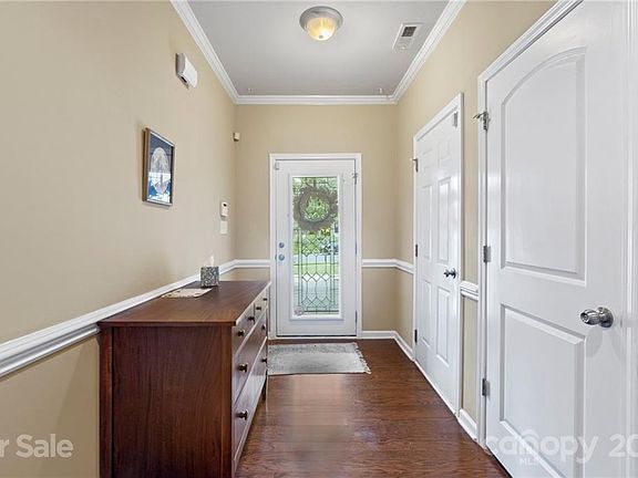 Private lot backs up to water view of the pond, water feature and trees all around. Best lot in the neighborhood- previous model with amazing upgrades! Open floor plan with granite countertops, tile backsplash, stainless steel appliances, gas log fireplace, hardwood floors, extensive cabinetry with glass inlays & lighting, kitchen island with breakfast bar, crown molding, chair rail, recessed lighting, ceramic tiled bathroom floors & garden tub surround, separate shower, tray ceiling in the master with walk in closet, separate laundry room surround sound, 2" faux wood blinds throughout. Tons of natural light in this house and views of trees from every window! Upper level boasts a musicians dream with soundproofing on all walls!!