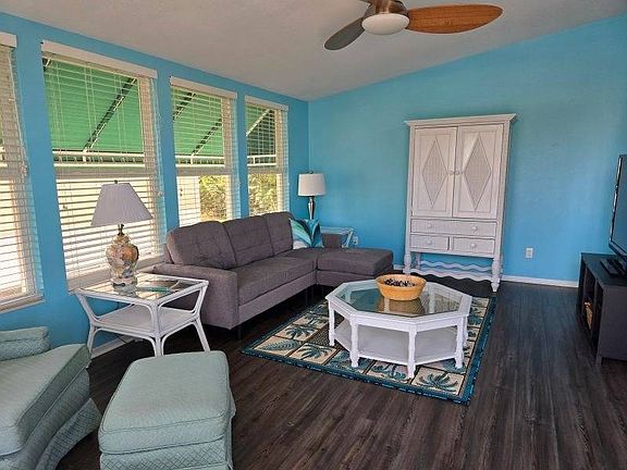 Discover the relaxed elegance of Crystal Lake RV Resort with this beautifully renovated vacation home, where bright, coastal-inspired interiors create a warm and inviting atmosphere. This thoughtfully updated 2-bedroom, 1.5-bath home features Core Tech vinyl flooring, a new roof, brand-new plumbing, and a new water heater, ensuring modern comfort and peace of mind. Step outside onto the spacious back porch, surrounded by lush landscaping and the tranquil sights and sounds of nature - the perfect setting to unwind, entertain, or simply enjoy the outdoors. An attached shed offers convenient additional storage, making this home as functional as it is stylish. Located in a welcoming and vibrant community, residents of Crystal Lake RV Resort enjoy access to a range of amenities and the opportunity to connect with friendly neighbors who share the vacation lifestyle. This home offers the perfect blend of comfort, charm, and community. Start making lasting memories today! Crystal Lake is a 10-month community.