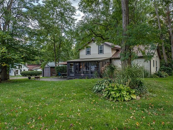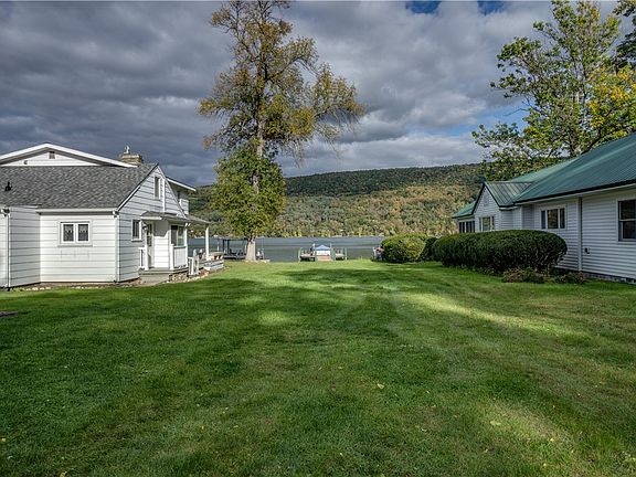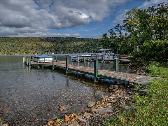 Super Charming, old-style, seasonal KEUKA LAKE cottage at an AFFORDABLE PRICE! Enjoy 40 feet of level shale beach and a permanent dock which is SHARED with two other cottages! Dock provides slips for each cottage to have a boat. Deep water lets you moor just about any style of boat. LOW TAXES! The First-floor primary bedroom with an attached half bath & ample closets also has door to the outside. A full bathroom is located on the first floor. PUBLIC water! Upstairs is one more bedroom with beaded tongue and grove accents. 10-year-old metal roof. Level lawn with beautiful landscaping and an extra storage shed for all your tools and toys. This home also has an attached room running the length of the cottage, currently used for laundry, projects, and storage. Could be made into an office area or studio. Large screened-in patio/porch for all your gatherings. Quiet, peaceful, & located well off 54a on a private road which is maintained by the Stone Point Association for $90. a year. Open views of the lake and beach area. Great location near Keuka Yacht Club and restaurants, many of them accessible by boat! Delayed Showings start 10/12/23. Delayed Negotiations begin 10/23 at 3pm.