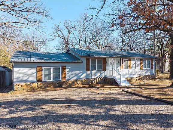 Warm wood accents, crisp white finishes, and loads of curb appeal. Welcome to 14907 John Tatum Place. Traveling on Highway 71, as you enter the Jenny Lind Area you'll turn onto Bonanza Road, and take a left on John Tatum. It's a quiet location and situated perfectly between Greenwood and Fort Smith. Be greeted with a crisp-white porch, and upon entering your eyes will go to the charming kitchen area. A window above the sink, floating bar cart, and brick accent features make this space inviting and lovely. Open area perfect to share with your family and friends. Step down into another living area, and cozy bedroom space, home also offers 3 additional bedrooms on the main level (one bedroom does have washer/dryer connection), split floor plan. Durable & Stylish Metal Roof. 4 bedrooms/2 full baths. Award Winning Greenwood School District. Large backyard (.69 +/-), mature trees, not to be taken for-granted! Plenty of space to play & garden. Don't miss out-schedule your showing today!