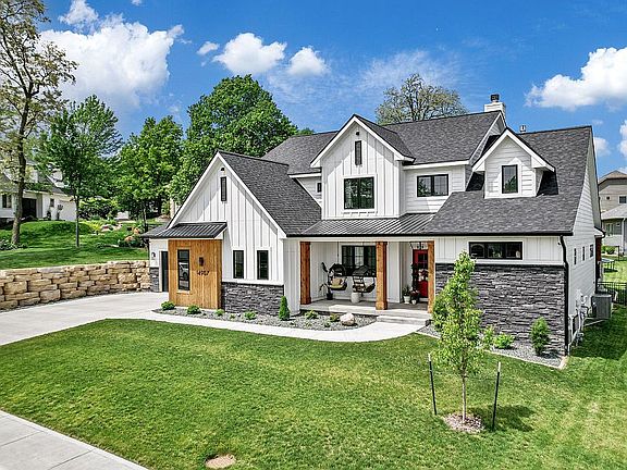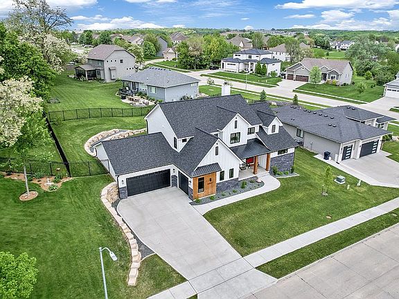 Call the homeowner at (515) 210-8712 to schedule a showing. Willing to work with Buyer's Agents. Prepare to fall in love with this amazing 5-bedroom Executive Quality 2-story with upgrades that make it look like it came directly from the pages of Better Homes and Gardens magazine. The curb appeal is fantastic with a lush irrigated lawn, meticulous landscaping, and a country farmhouse design with natural wood and stone accents! You'll greet your guests on a covered front porch and welcome them through the double front doors to a spacious entry foyer that carries them into the main living area. You'll say WOW when you see the stunning living room with a 2-story high ceiling and a wall of windows that stretch nearly to the top. There's a marvelous white brick wood-burning fireplace creating the perfect place to relax and enjoy an Iowa winter's night. The living room is open to the dining area and kitchen. The dining space is much like a sunroom with windows on three sides. It has plenty of room to host family and friends and it includes a sliding door to a covered composite deck that's great for grilling and outdoor entertaining. The deck has a stone fireplace and a spot for an outdoor TV, and it provides great views across the large flat backyard that's enclosed with a black wrought iron fence. The deck steps down to a marvelous patio area with a Jacuzzi. There is not a home immediately behind this one, so you have nice privacy. Back inside, you'll say WOW when you see the kitchen. It has an exposed beam ceiling, stunning quartz countertops, a subway tile backsplash, a built-in hutch, and stainless kitchen appliances are included. You'll love the large walk-in pantry and there's an extra large breakfast bar with room to seat five. You'll find the primary bedroom on the main floor. It has a double-sided fireplace that's also accessible from the en-suite bathroom. The bath includes dual sinks, a quartz vanity top, a subway-tiled step-in shower, and a soaking tub next to the fireplace. There's also a walk-in closet. The main level also includes a half bath, exits to the attached 2-car and 1-car garages, and the laundry room. The washer and dryer are included. On the upper level, you'll find 3 nice-sized bedrooms. One includes an en-suite bathroom. There's also a second bathroom on this level. You'll discover even more great space on the lower level. There's a large family room with a wet bar. There's also a bedroom and bathroom, plus unfinished space for storage. You'll appreciate the convenient location with fast access to the Hickman Road corridor that takes you to countless shopping, dining, and entertainment options. This one's almost too good to be true! Don't miss out on this one-of-a-kind opportunity.