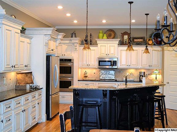 - KITCHEN DESC: Pantry, Crown Mold, Granite Countertop, Wood Floor, Kitchen Island, 10? + Ceiling, Built Ins