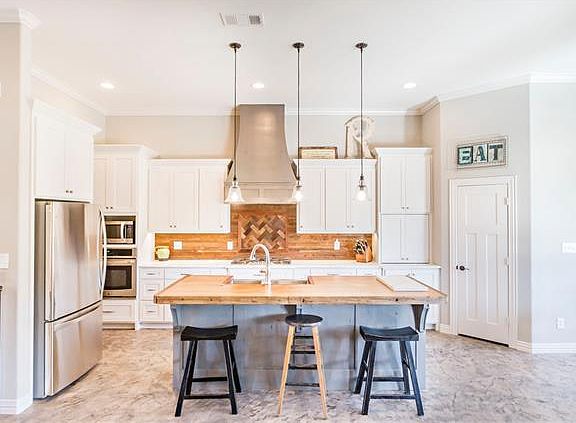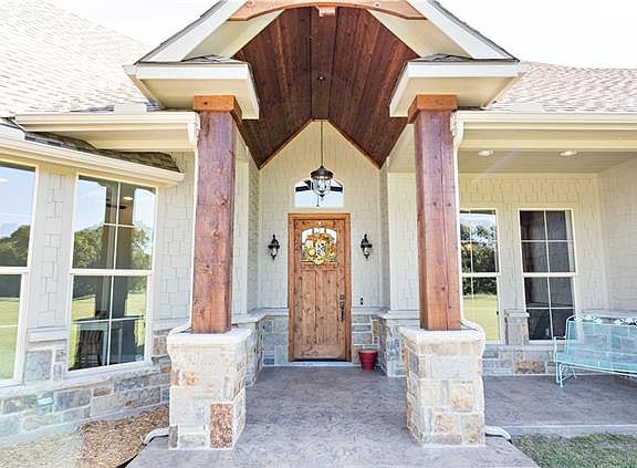 Stunning,custom built home is NEARLY brand new in prime location.Just 2.5 mi from I45 & only minutes from town, outside city limits on 5.42 acres.Seasonal creek & HUGE trees line back property line.Home offers 4 bdrm,3 baths,formal dining & breakfast space w-wide open floorplan.Stamped concrete floors,custom cabinets, decorative lighting & unique details perfect this home. Enjoy family in upstairs gameroom or head outdoors to the expansive patio.